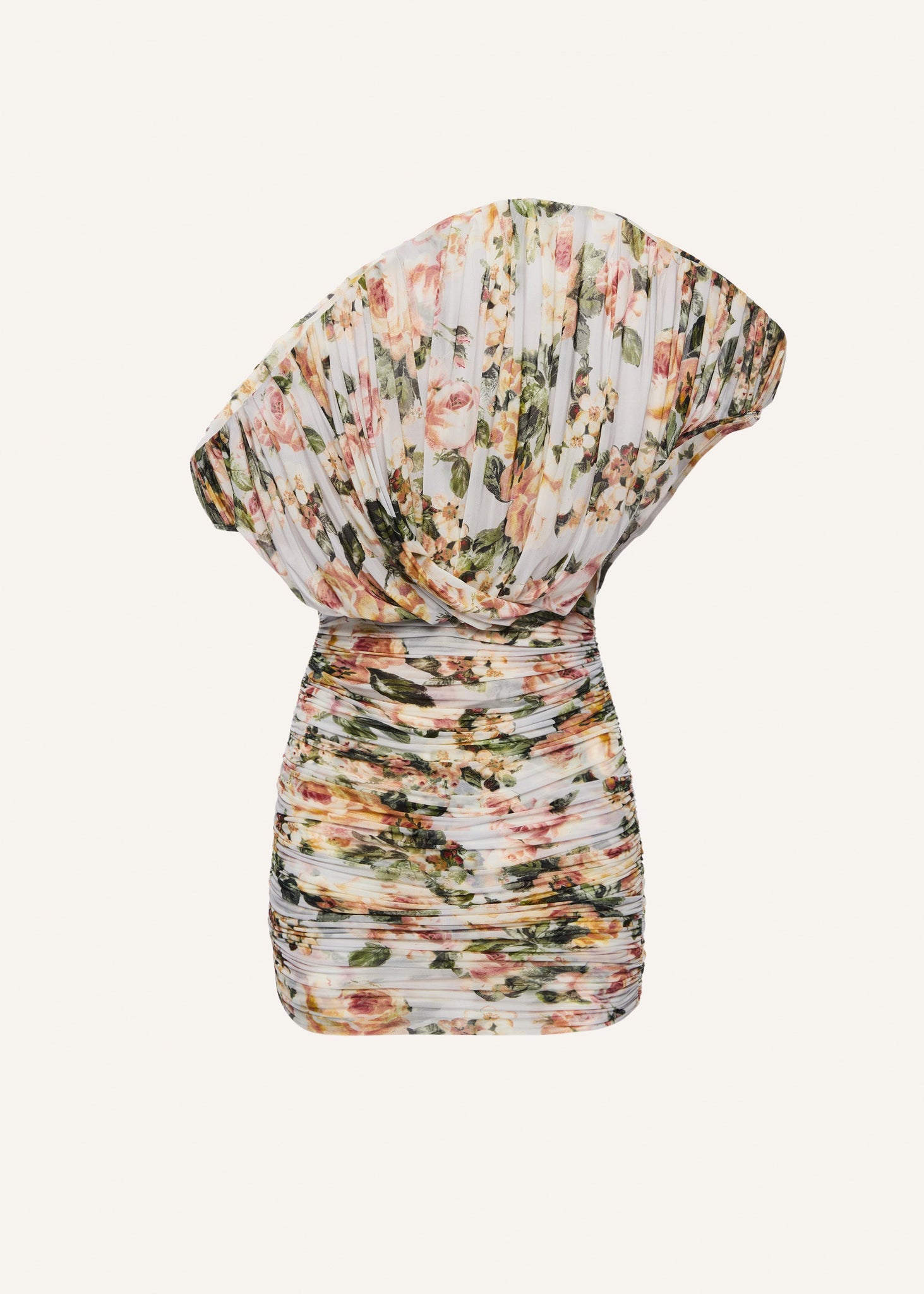 One-shoulder fan mini dress in floral print