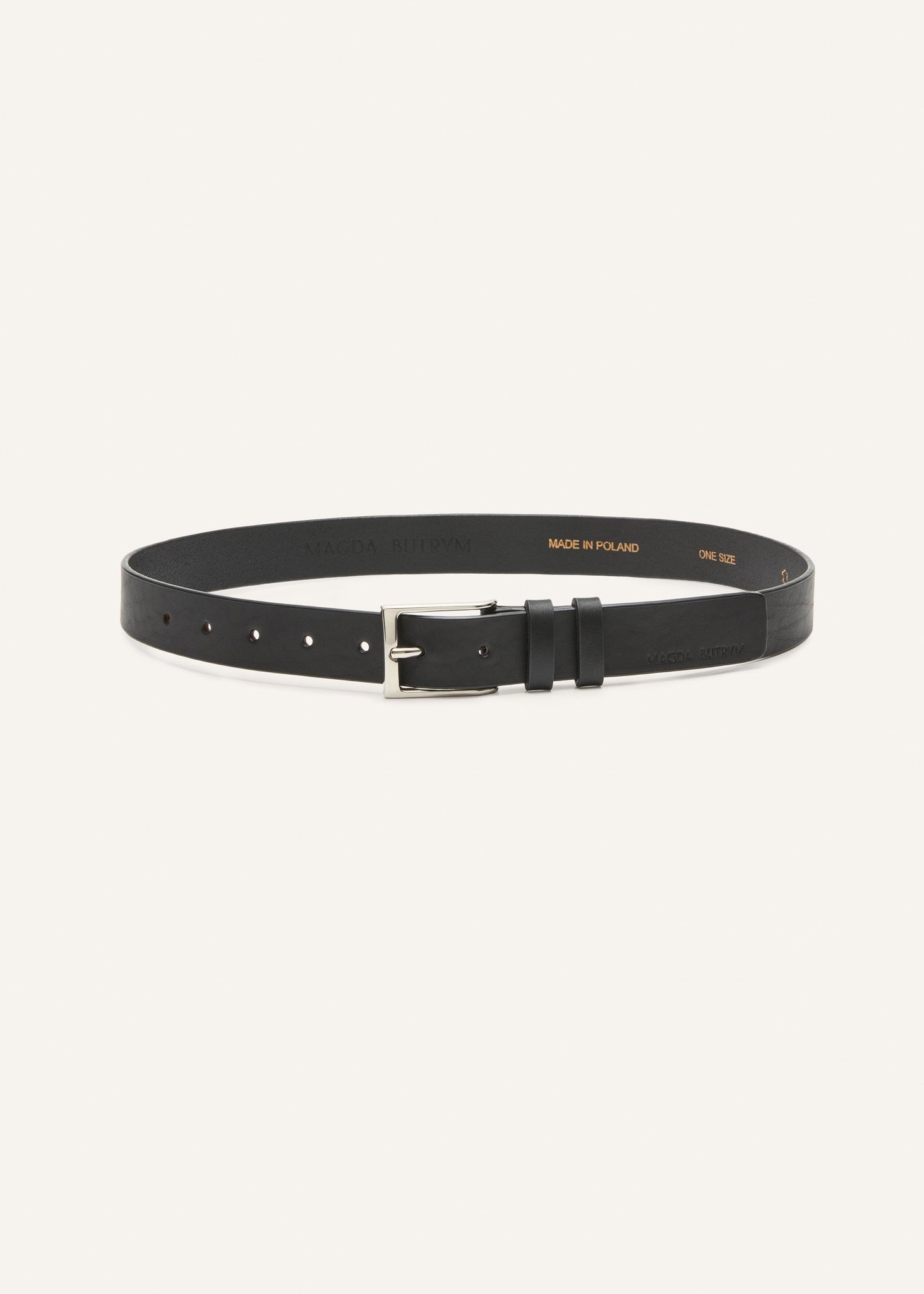 Classic matte black leather belt in silver