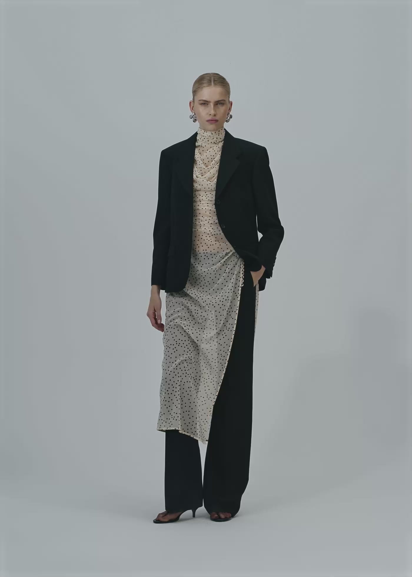 The signature Magda Butrym tailoring shape is created this season from silk, offering a lightweight yet elegant and classic blazer option.