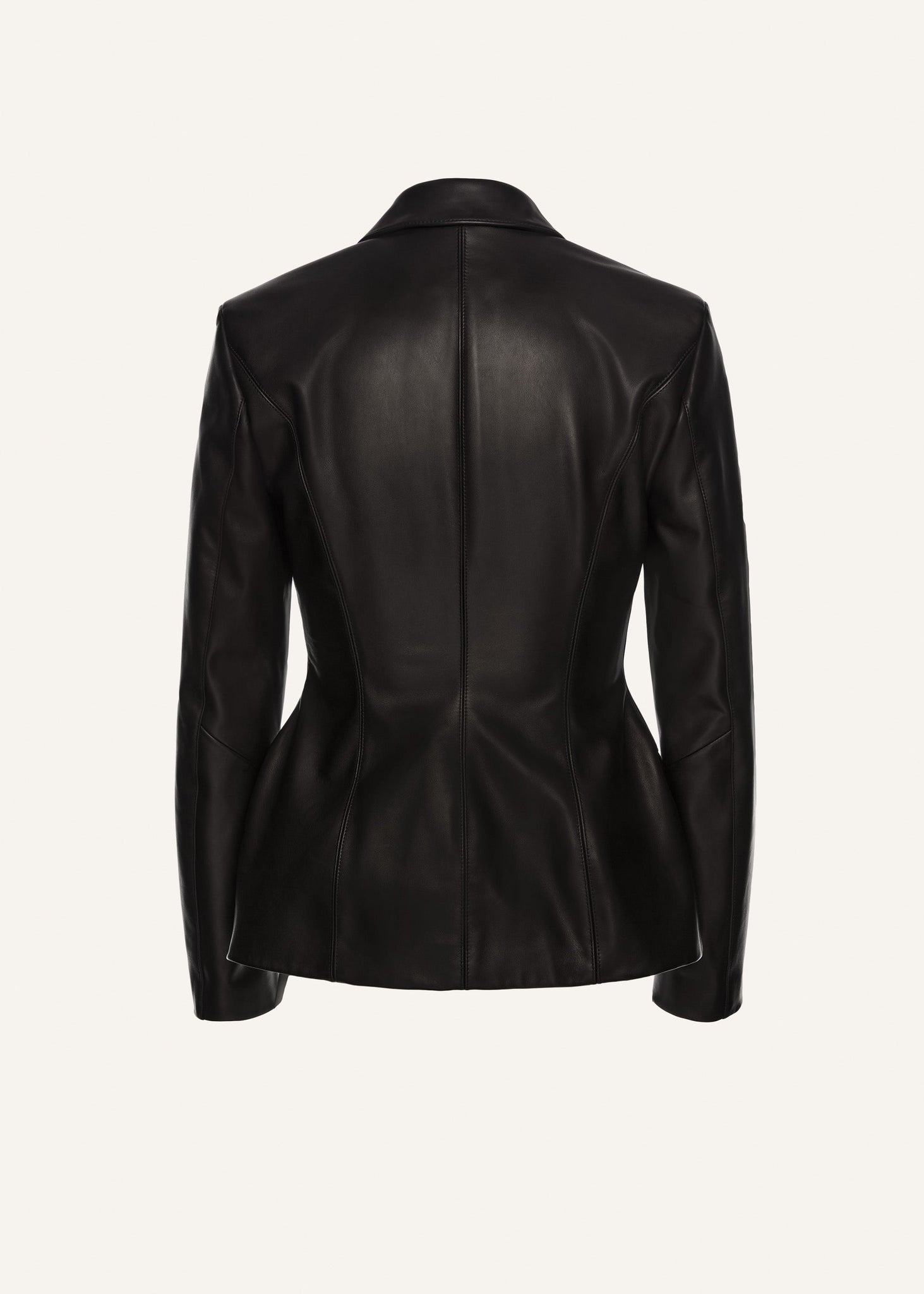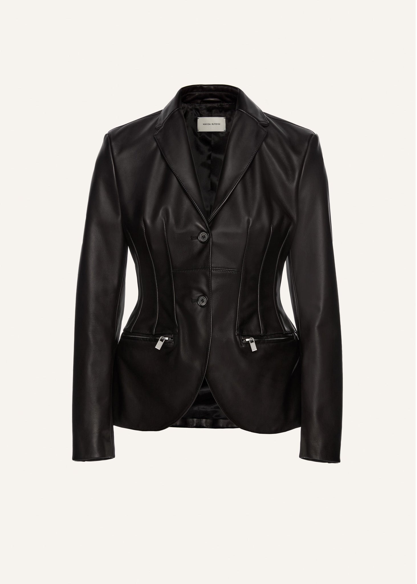 Corset stitch detailing at the waist gives a feminine finish to a classic leather blazer.