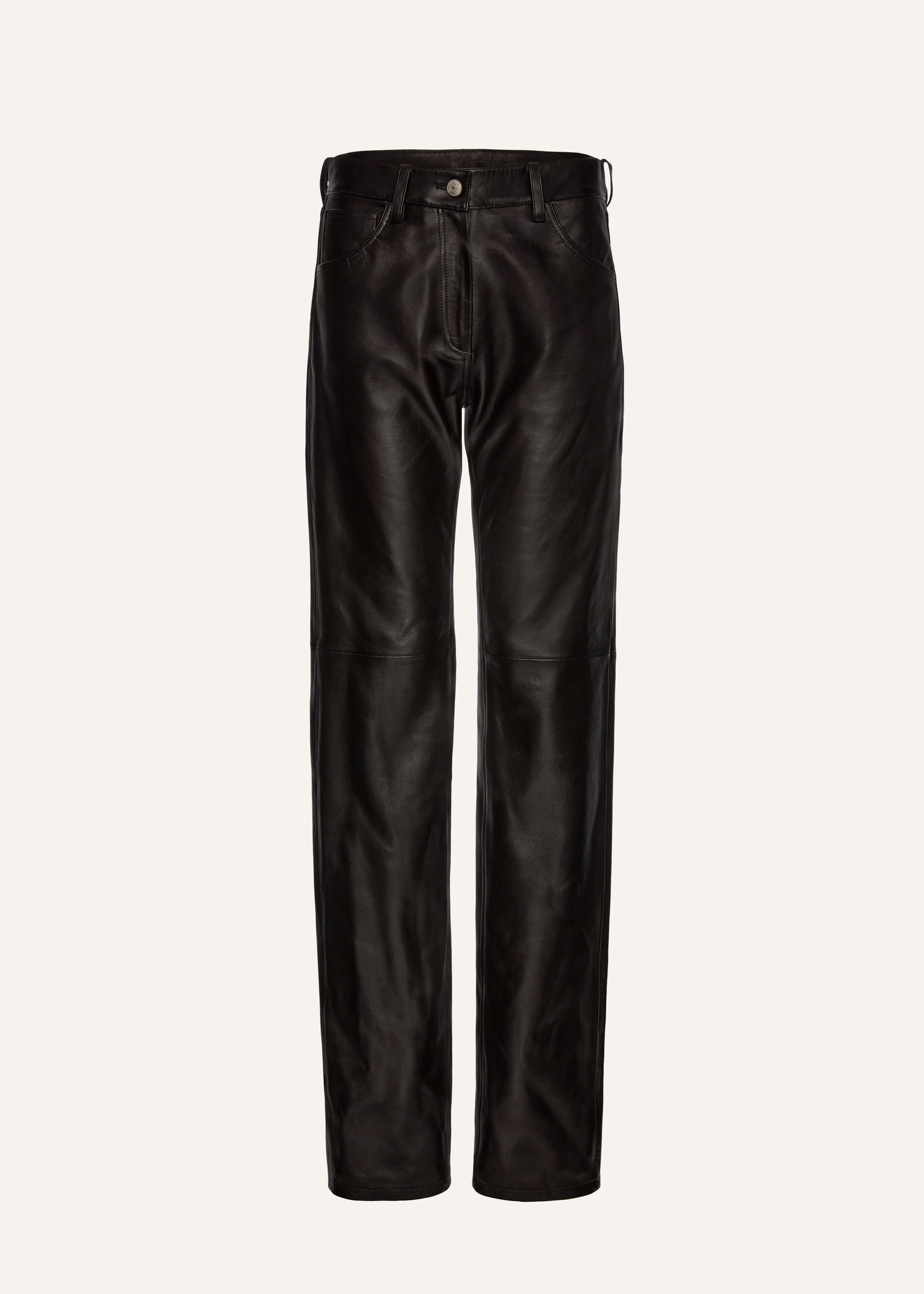 Classic leather pants with a straight-leg.