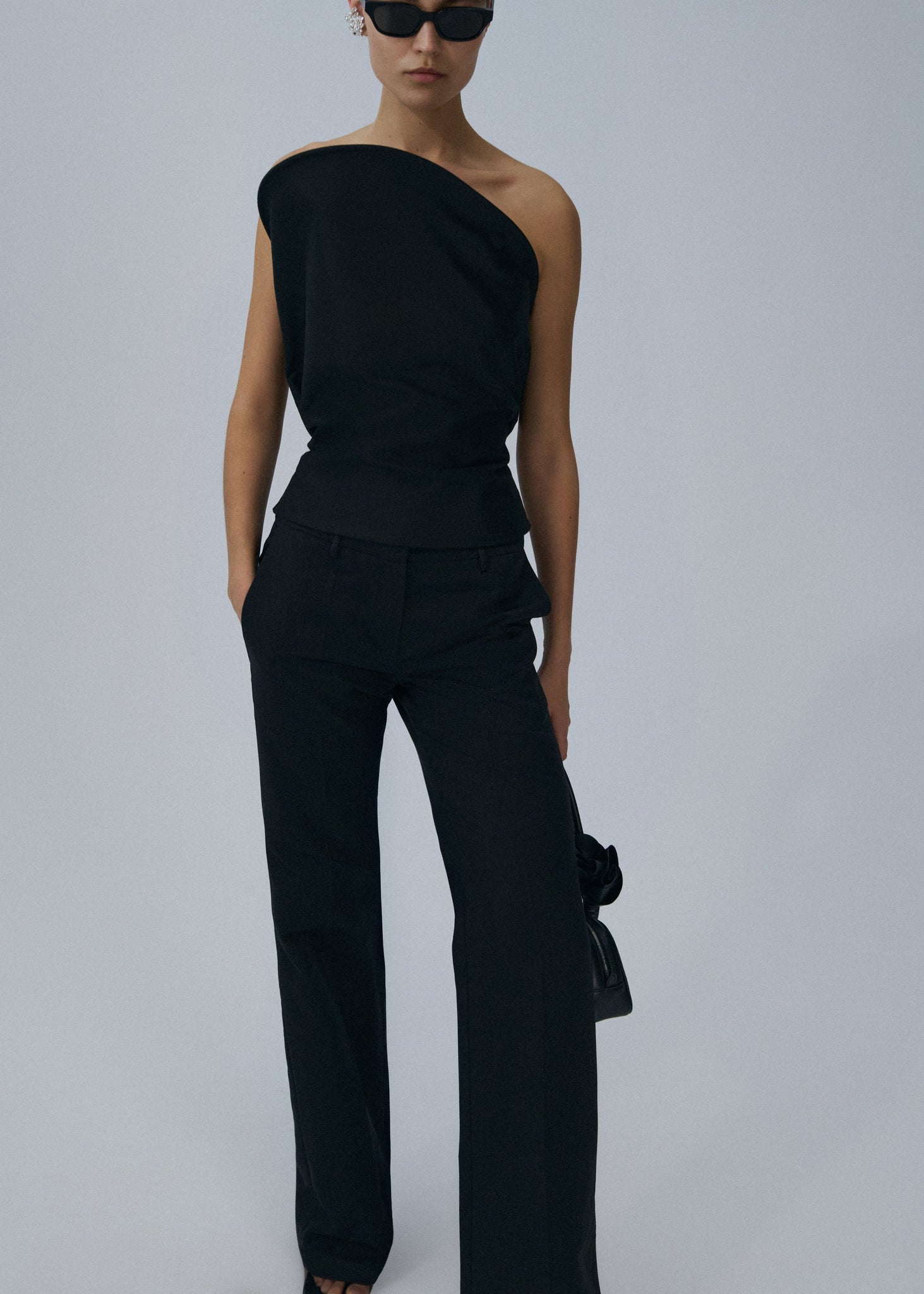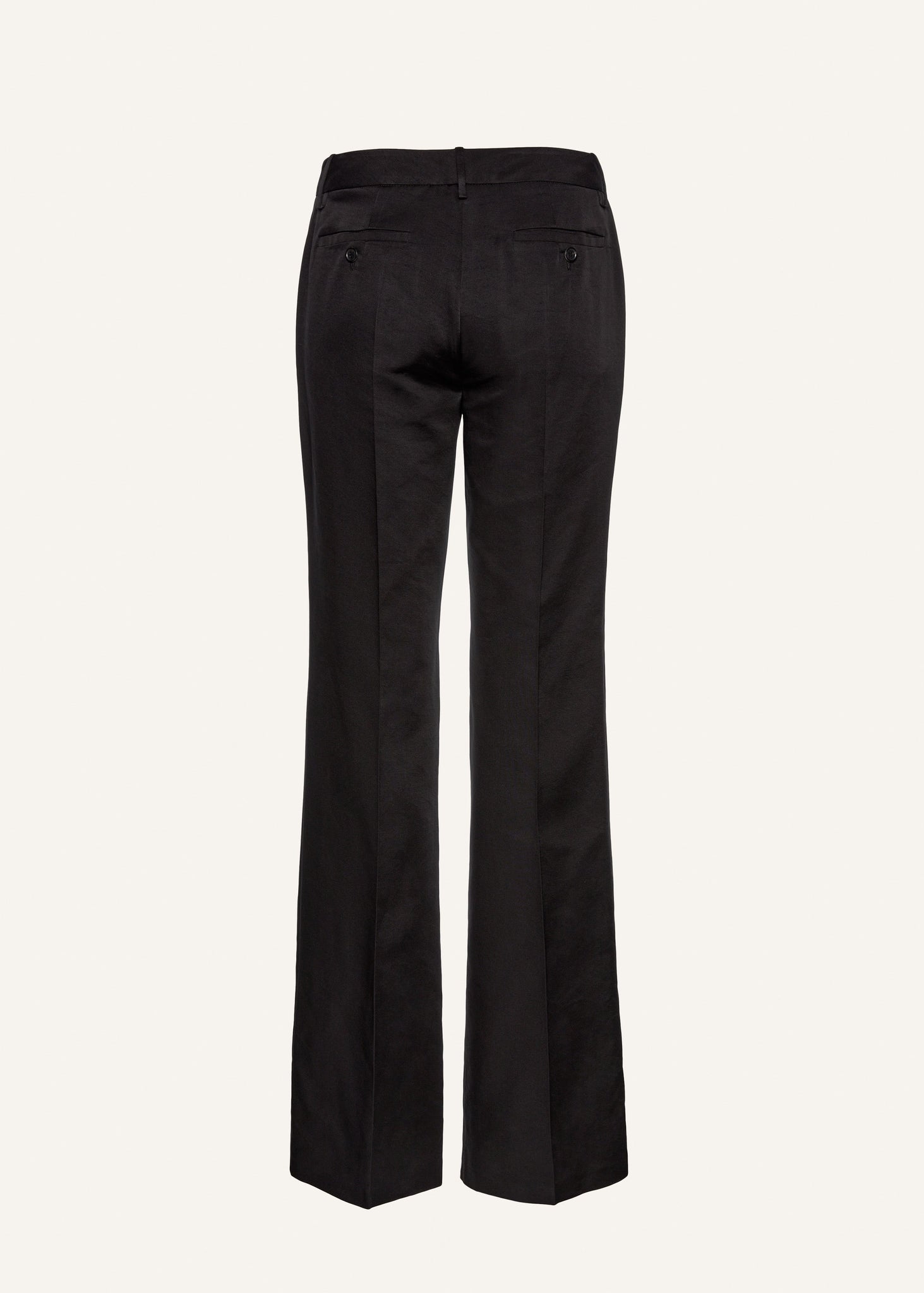 Classic silk trousers with a relaxed fit and slight flare leg, finished with a pleat down the front.