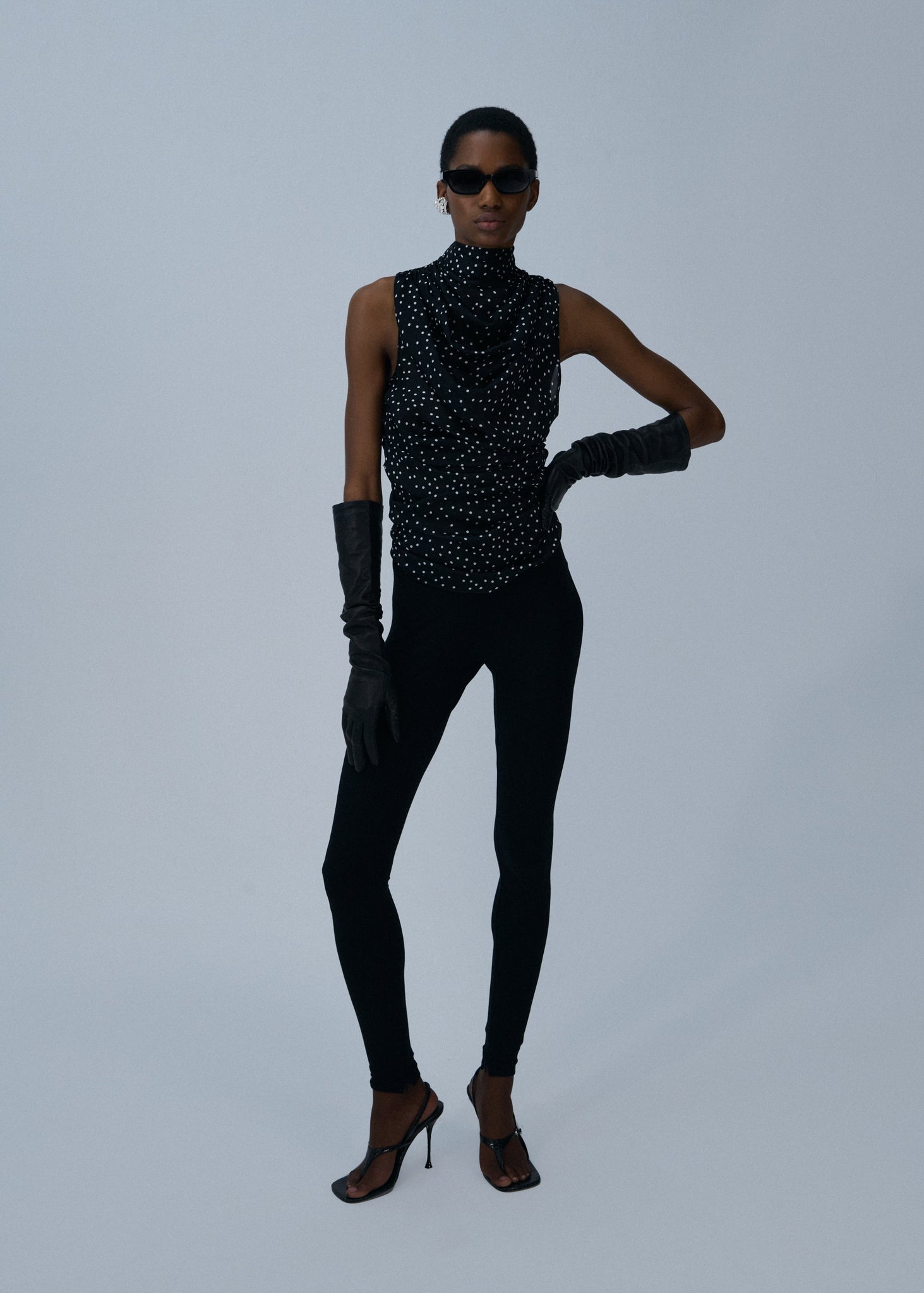 Simple stretch leggings, made from viscose, with an elastic waistband.