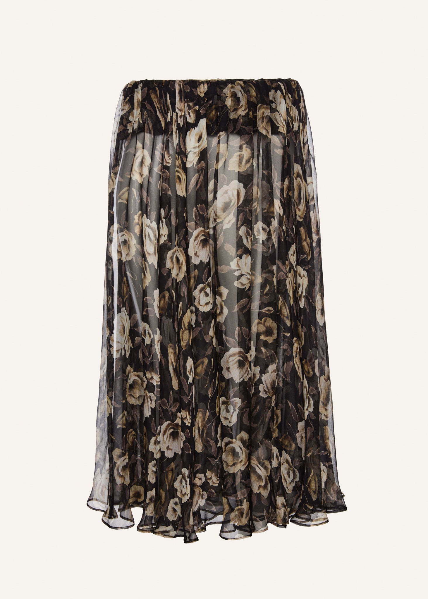 A low waist midi skirt made from sheer flowing silk, with an elastic waistband.