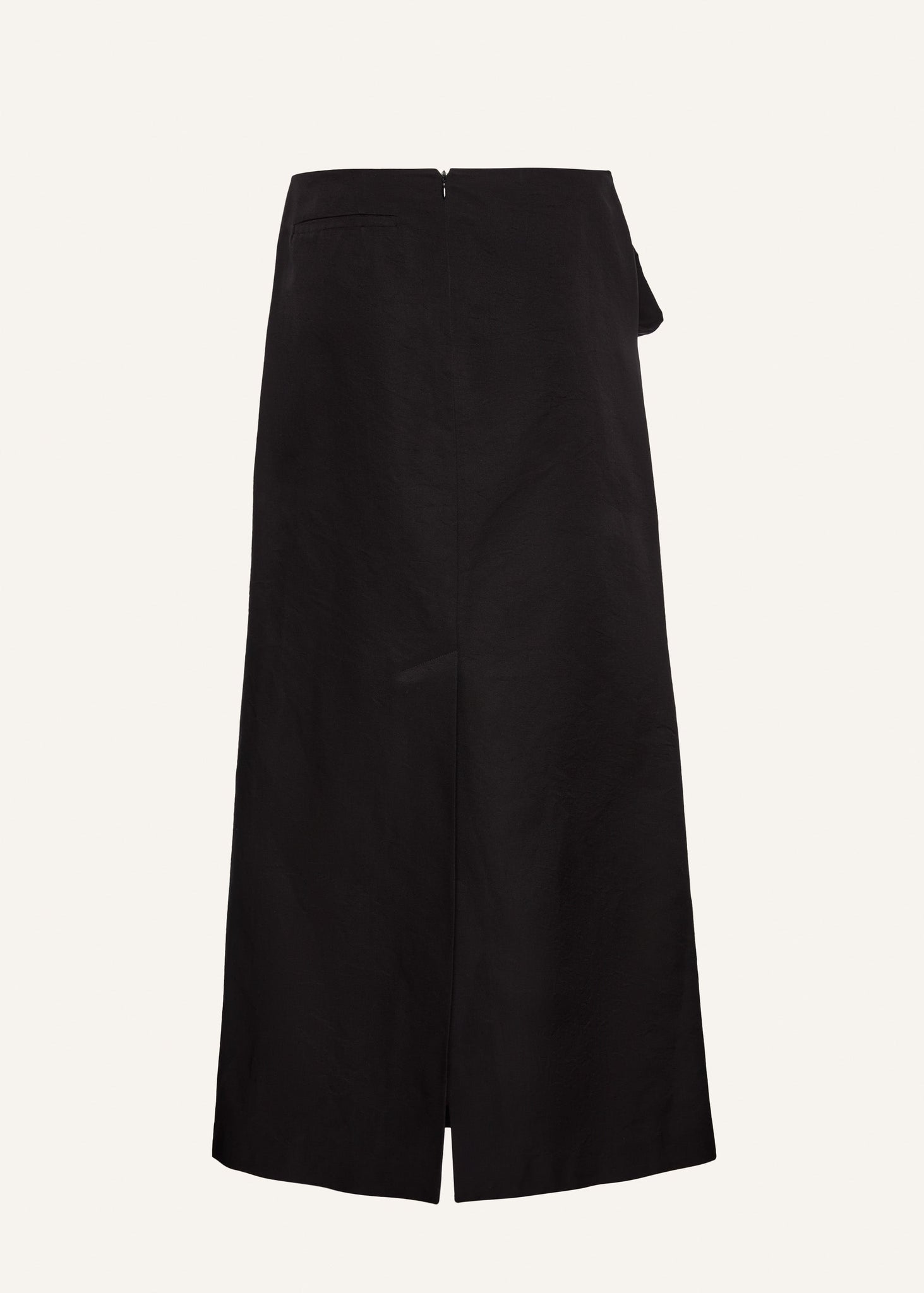 A ladylike maxi skirt with a structured feel and a subtle asymmetric draped detailing, finished with a low waist.
