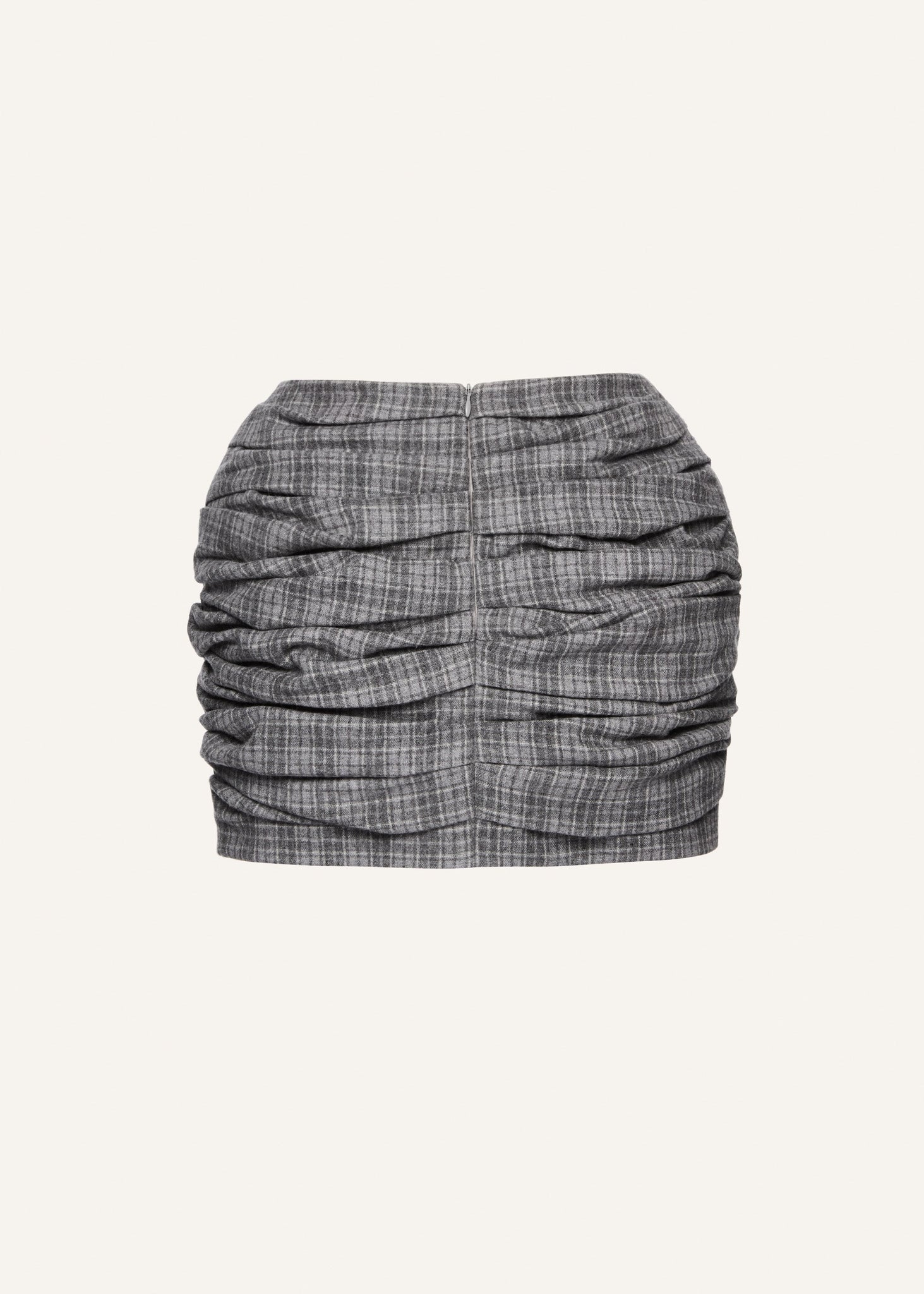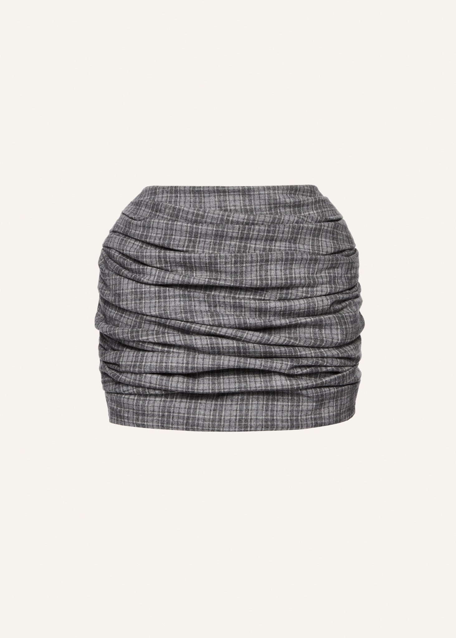 This draped mini skirt has hip padding to create an hourglass silhouette.