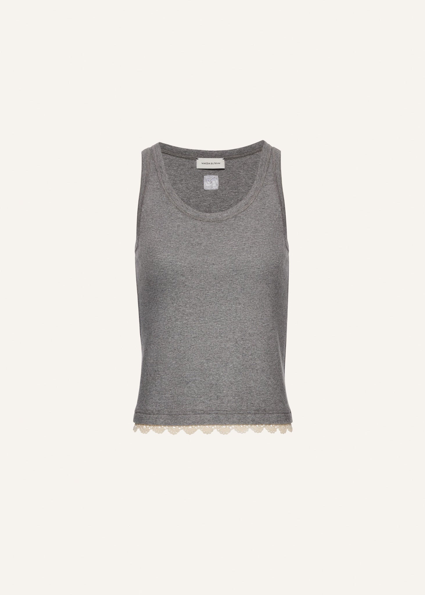 A simple cotton tank top featuring Magda Butrym's signature handmade lace crochet detailing at the hem.
