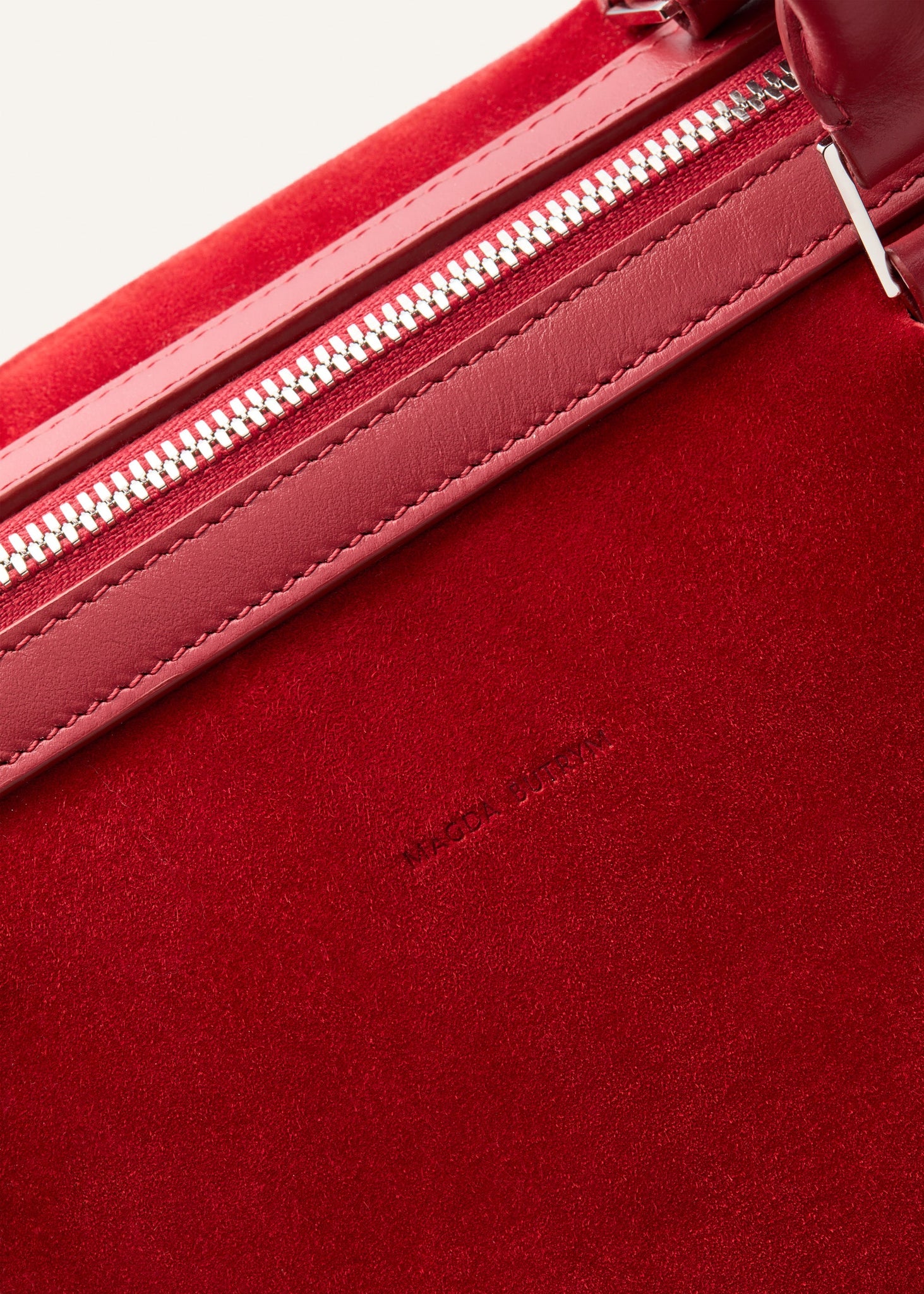A tribute to Magda Butrym’s roots in Warsaw, the Varsovia bag is a timeless blend of elegance and versatility. This design features a structured silhouette with both top handles and a detachable crossbody strap. Crafted with meticulous attention to detail, its leather exterior is complemented by a detachable flower charm, adding a signature touch of femininity. Perfect for carrying essentials, the Varsovia bag is a statement of timeless elegance, accompanying you effortlessly as you stride through the city. Available in various leather finishes and colors.