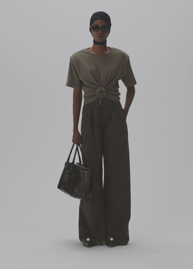 Magda's classic ribbed t-shirt features a knotted detail at the front and detachable shoulder pads.