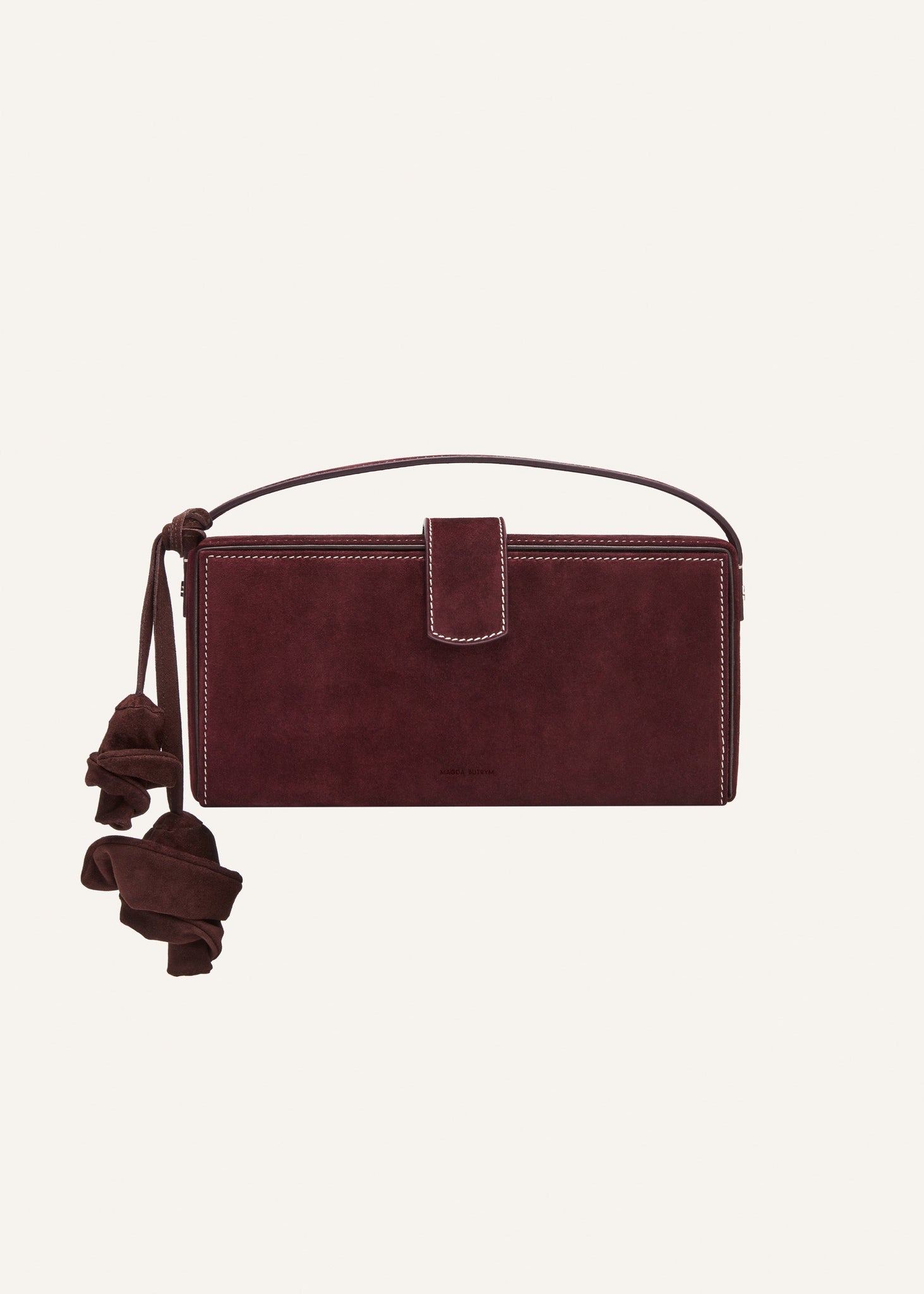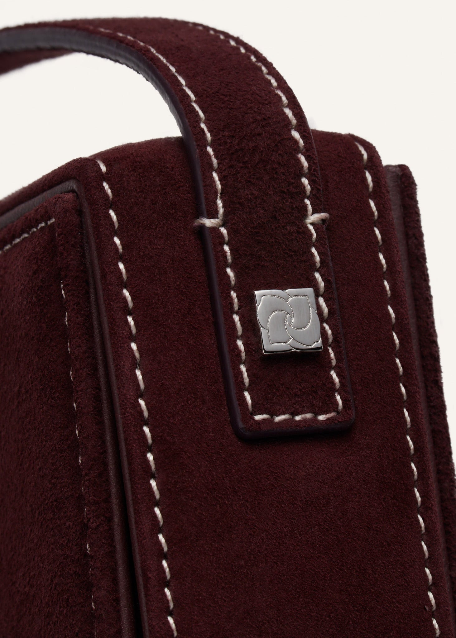 Apolonia bag in burgundy suede with flower charm