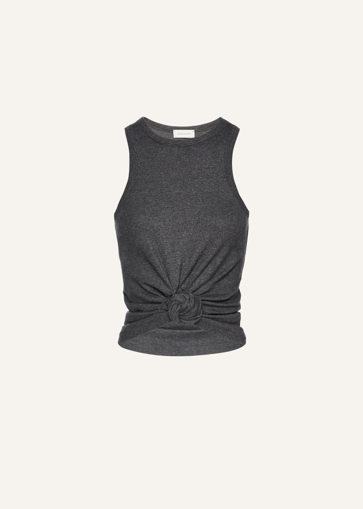 Magda Butrym's classic ribbed t-shirt is reinvented into a tank top, with a knotted detail at the front.